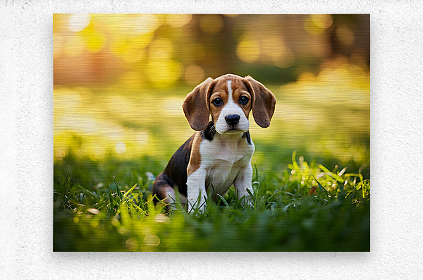 SUR CETTE OEUVRE: BEAGLE PUPPY SENSES SOMETHING STRANGE BEHIND HIM