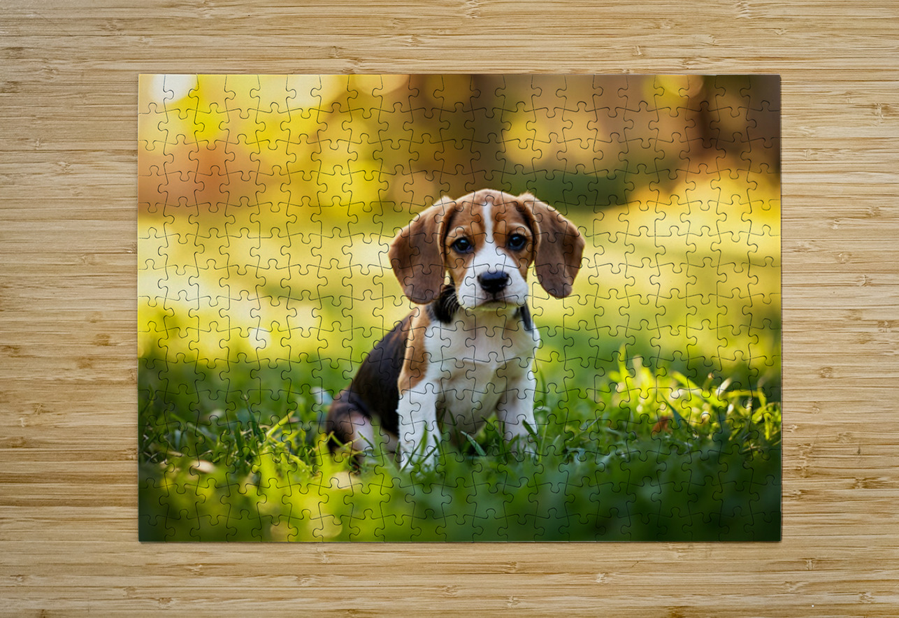 Beagle Puppy Senses Something Strange Behind Him Puppy Prints Impression de puzzle