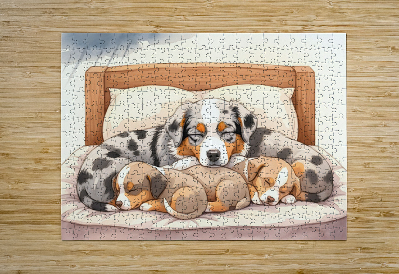 Sleepy Australian Shepherd Puppy Rests After Storm Puppy Prints Impression de puzzle