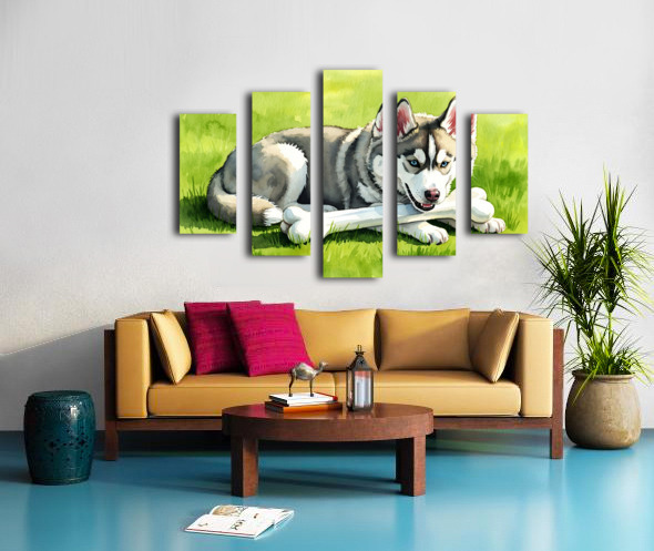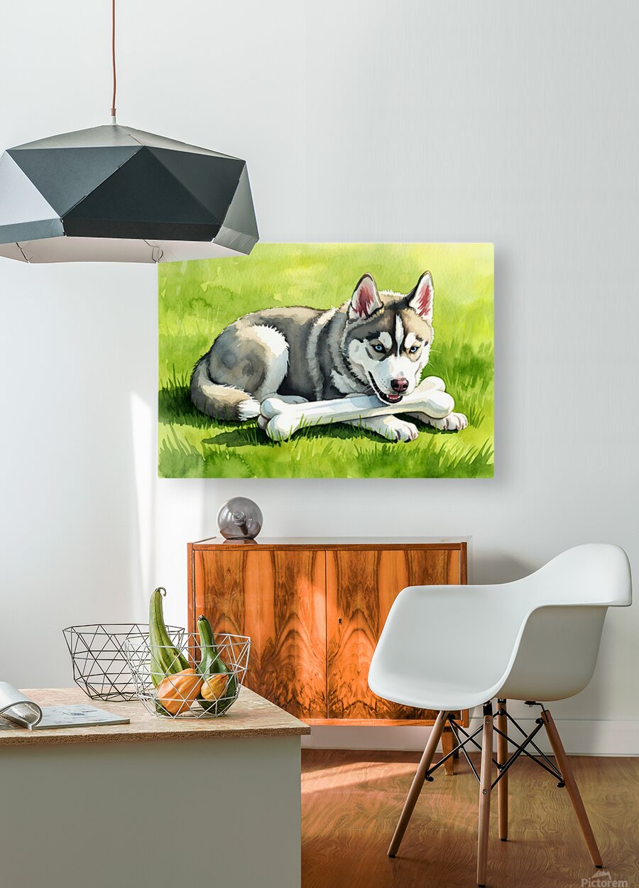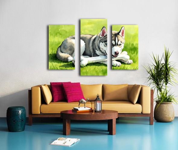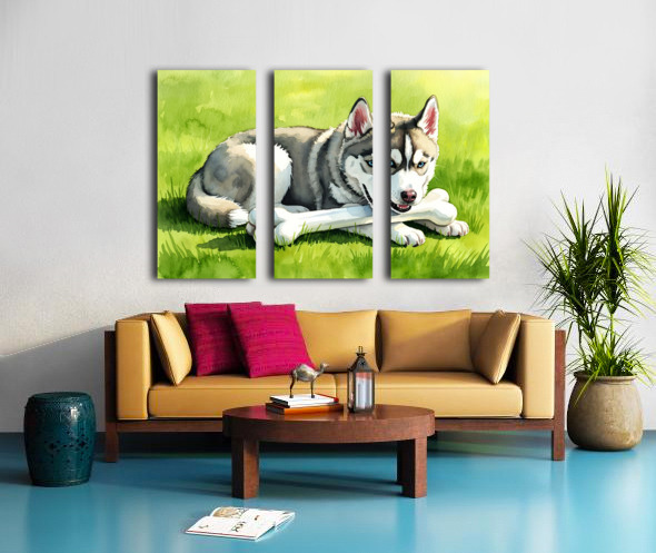 Content Husky Puppy Enjoys Victory With Bone Impression sur toile