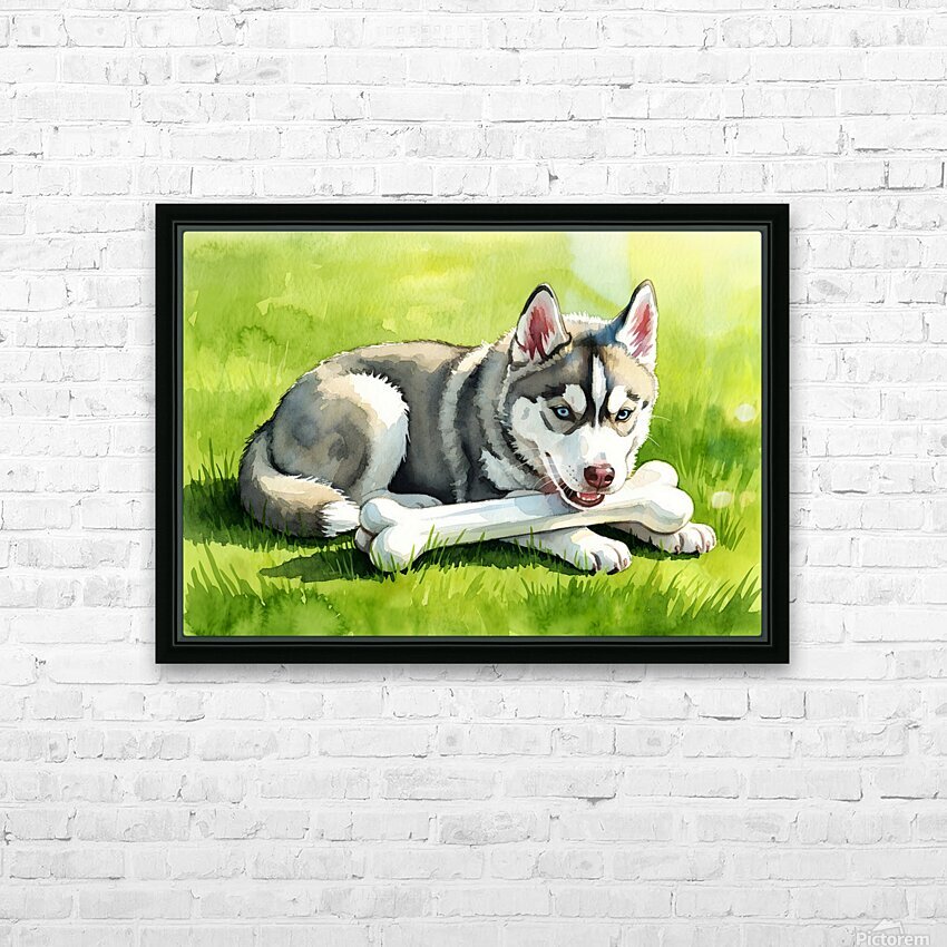 Pour obtenir "Content Husky Puppy Enjoys Victory With Bone" dans une impression encadrée.