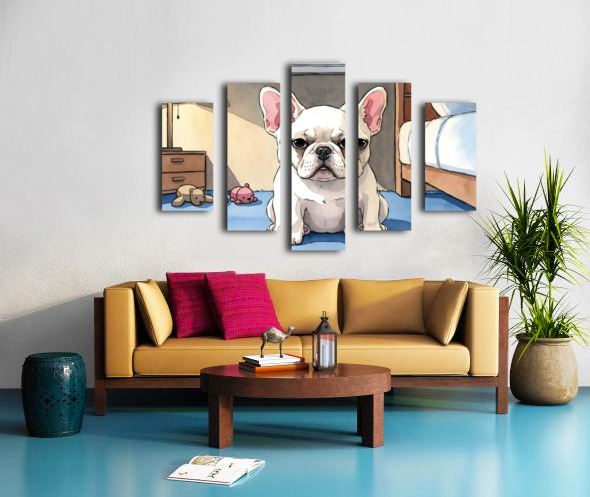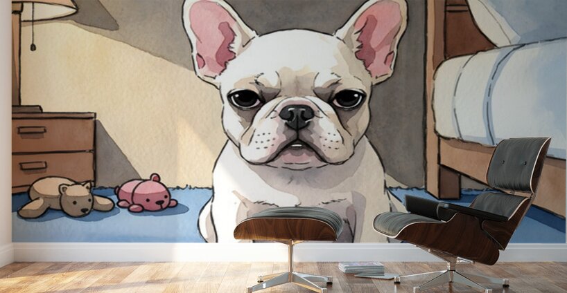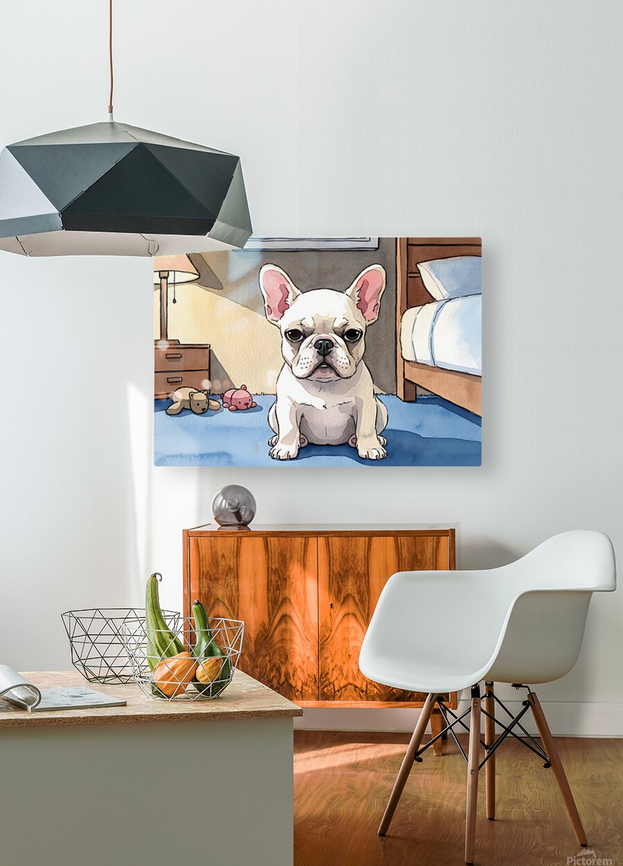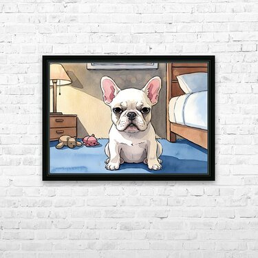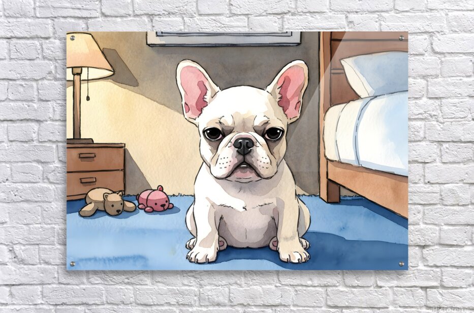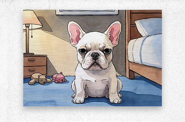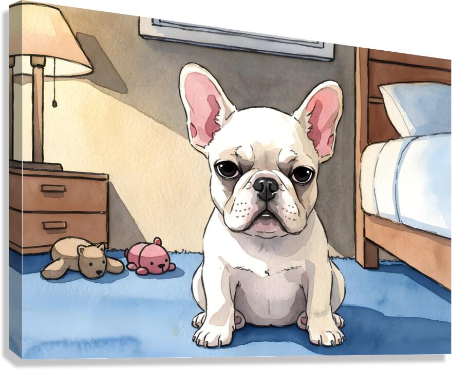SUR CETTE OEUVRE: FRENCH BULLDOG PUPPY GETTING SLEEPY AT BEDTIME