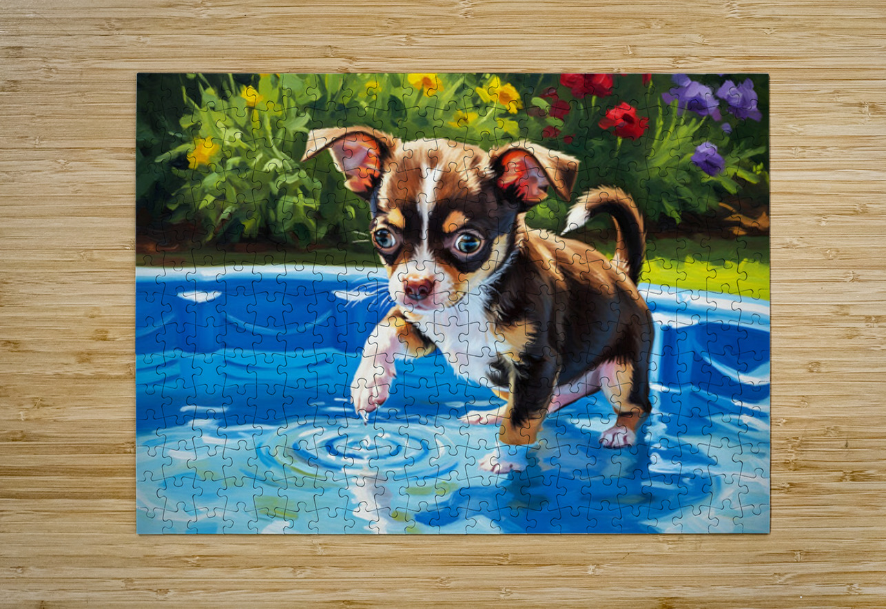 Chihuahua Puppy Discovers The Pool Puppy Prints Impression de puzzle