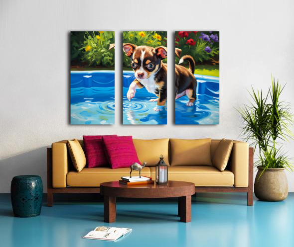 Chihuahua Puppy Discovers The Pool Impression sur toile