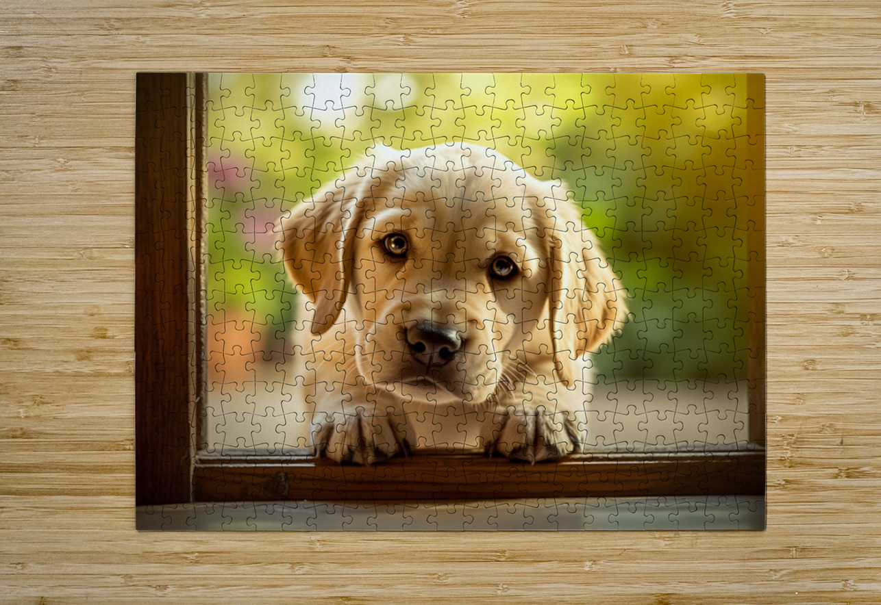 Curious Puppy Discovers Cat Flap Door Puppy Prints Impression de puzzle