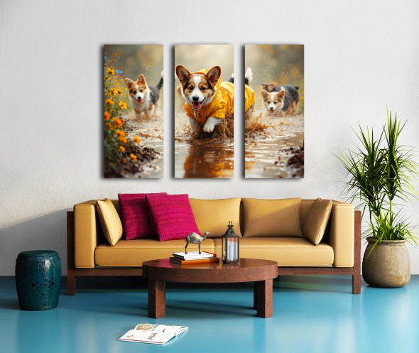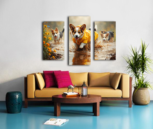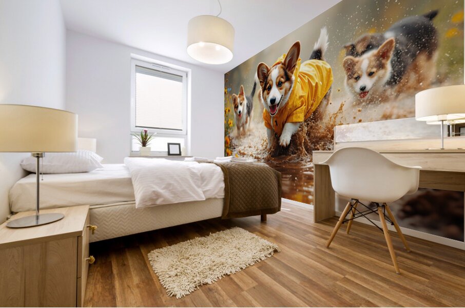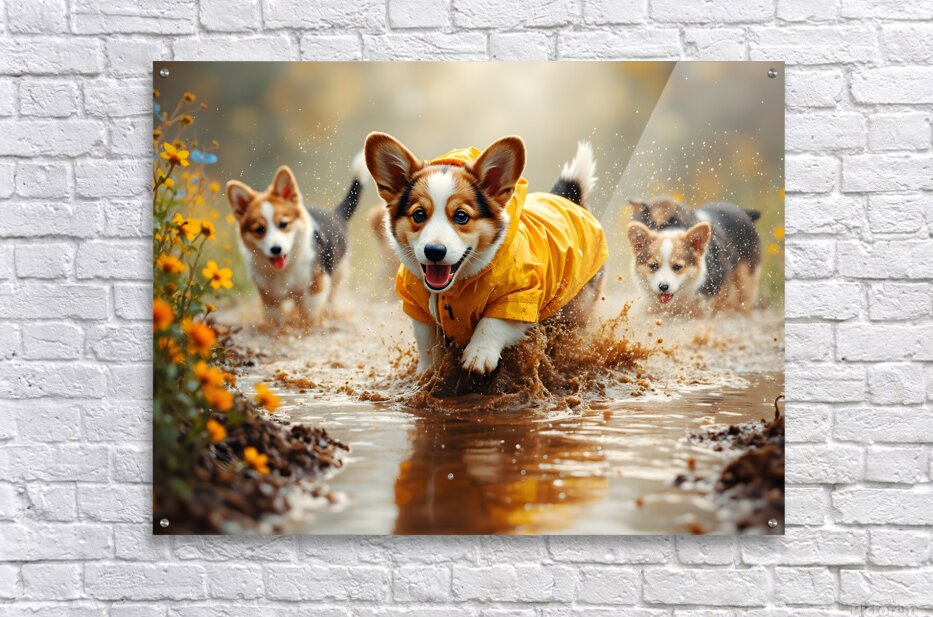 SUR CETTE OEUVRE: CORGI PUPPY READY FOR RAINY DAY ADVENTURE