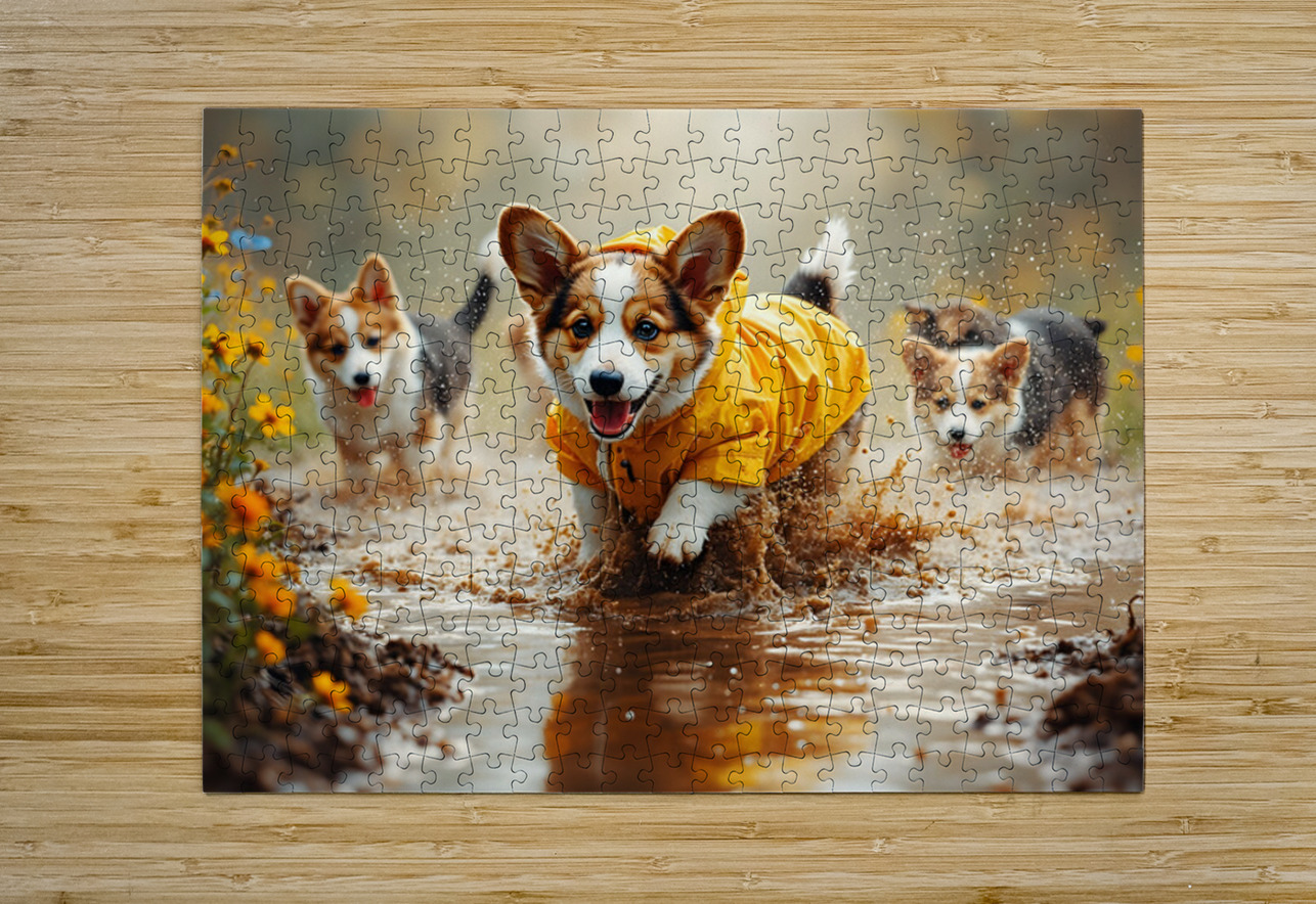 Corgi Puppy Ready For Rainy Day Adventure Puppy Prints Puzzle