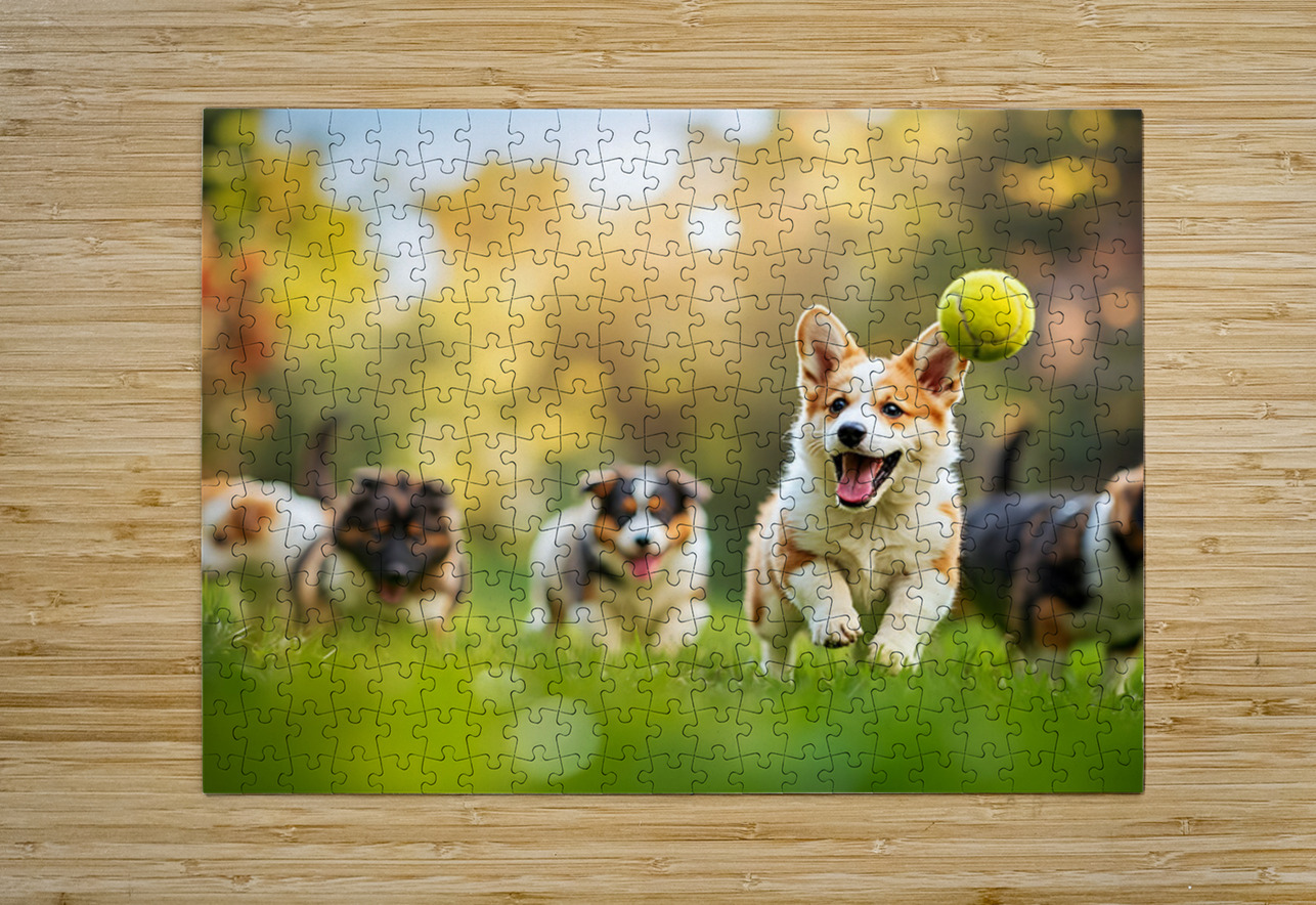 Corgi Puppy Spots Tennis Ball In Garden Puppy Prints Puzzle