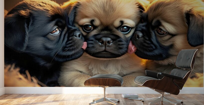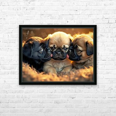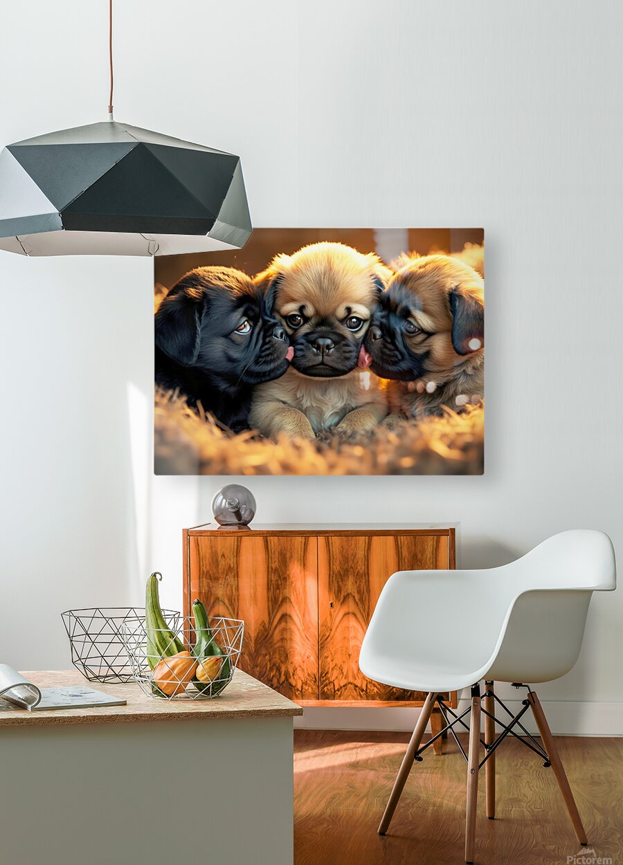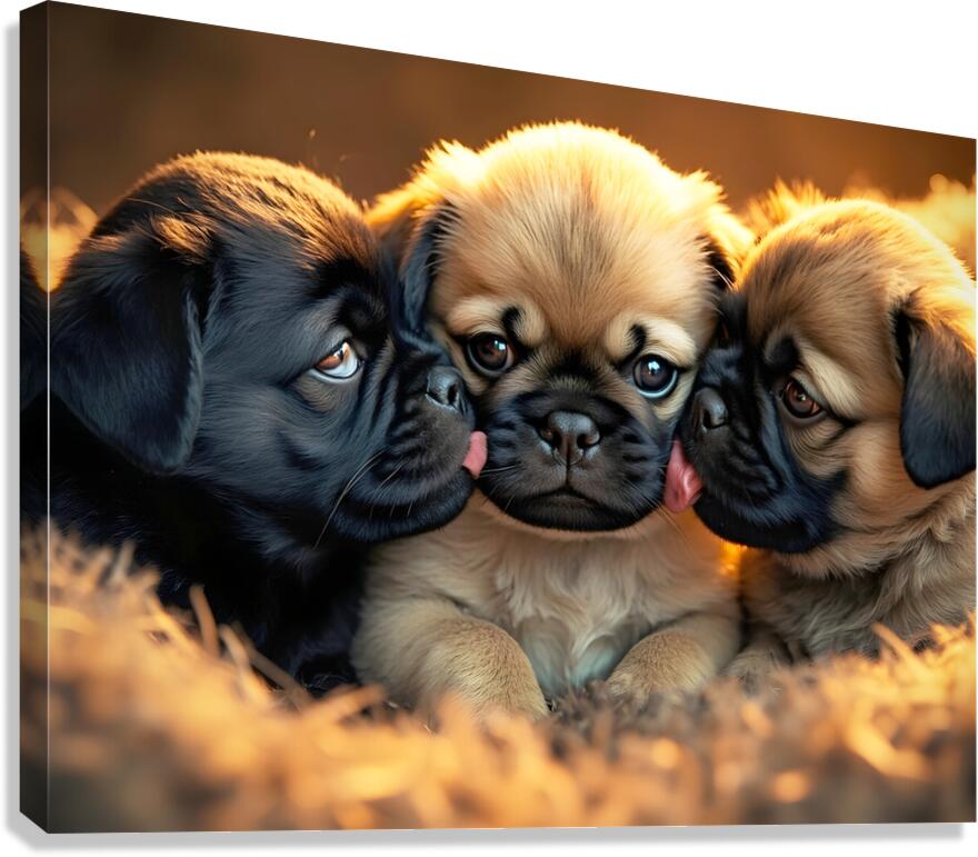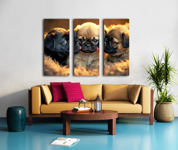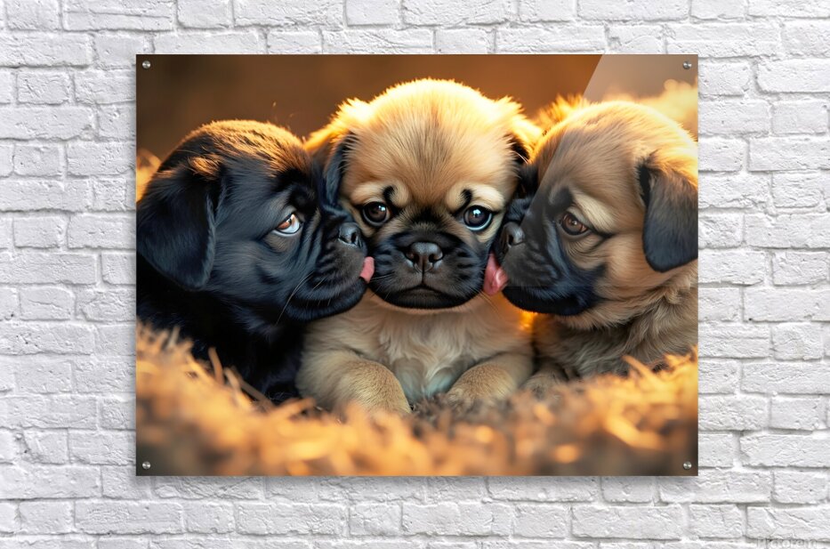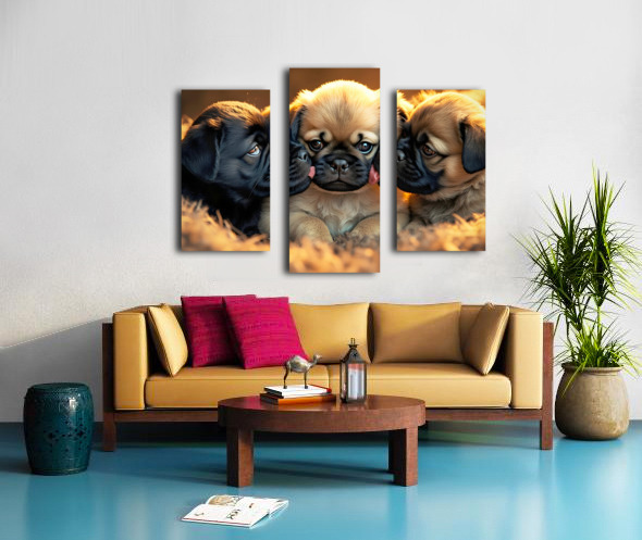 SUR CETTE OEUVRE: PUG PUPPY RESTS AFTER EXCITING PLAY SESSION