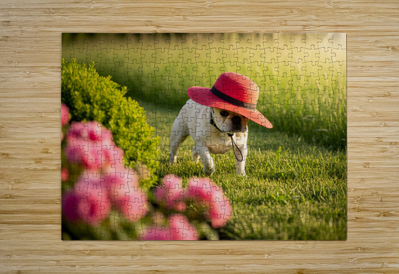 French Bulldog Puppy Discovers A Big Red Hat Puppy Prints Puzzle