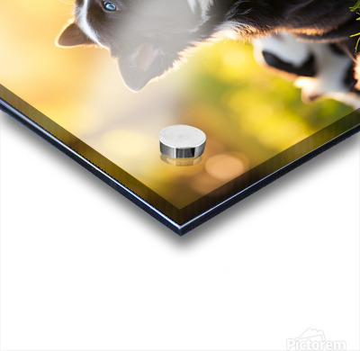 The black and white Border Collie puppy lies peacefully on the green grass eyes gently closing as it finally gives in to the drowsiness that spread through the group looking content and ready for rest Digital Artwork.