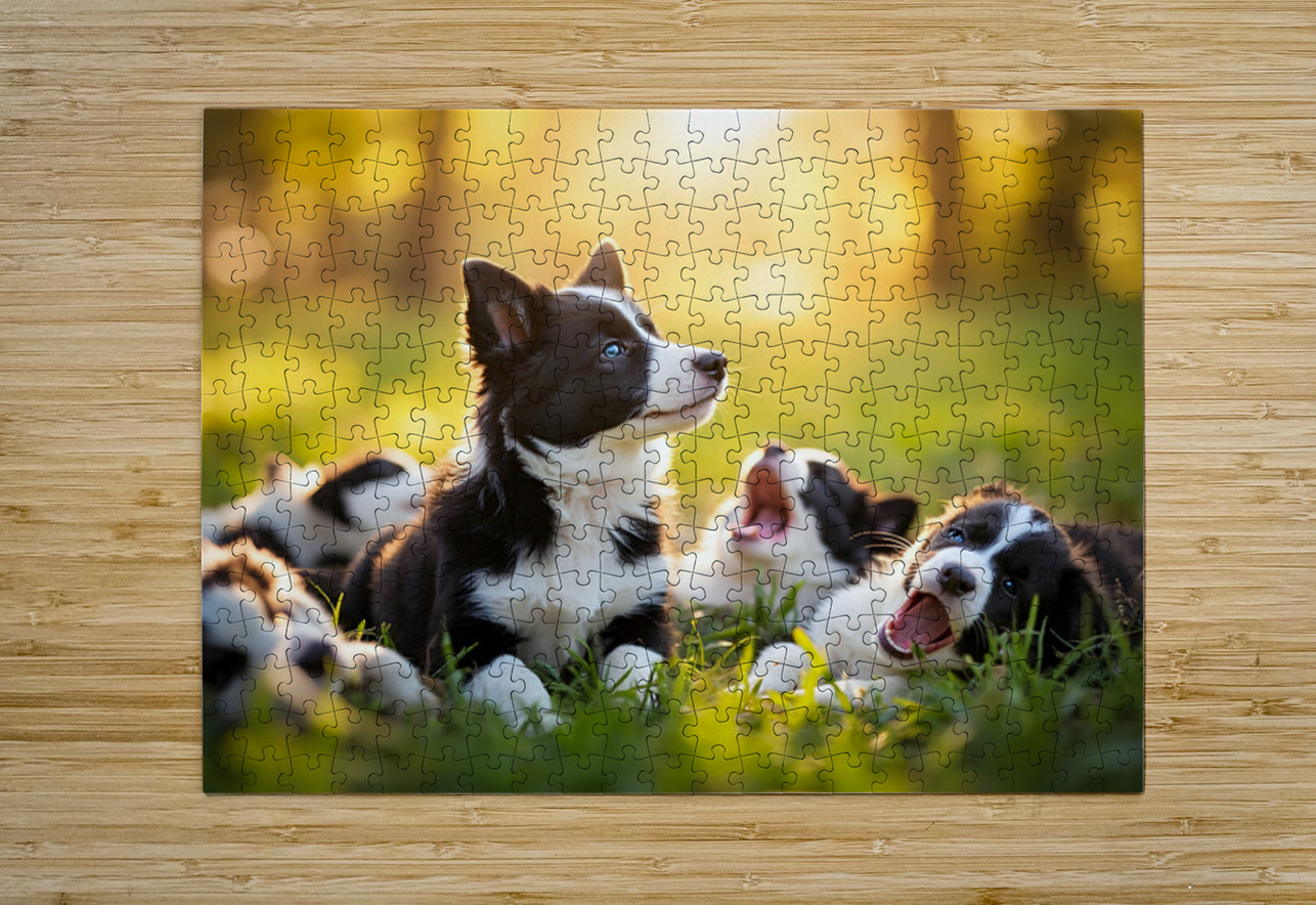 Sleepy Border Collie Puppy Finally Rests With Pack Puppy Prints Impression de puzzle