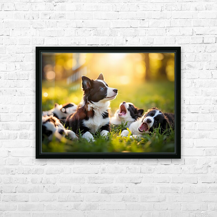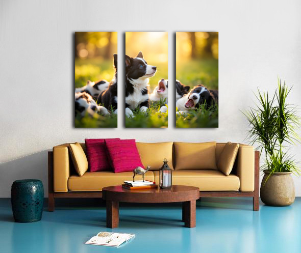 Sleepy Border Collie Puppy Finally Rests With Pack Impression sur toile