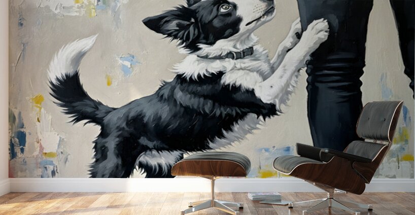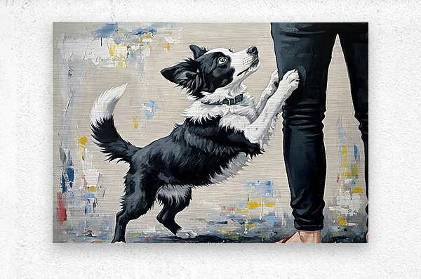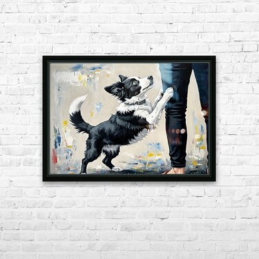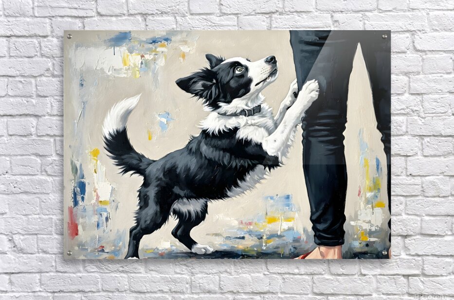 SUR CETTE OEUVRE: BORDER COLLIE PUPPYS JOYFUL GARDEN VICTORY DANCE