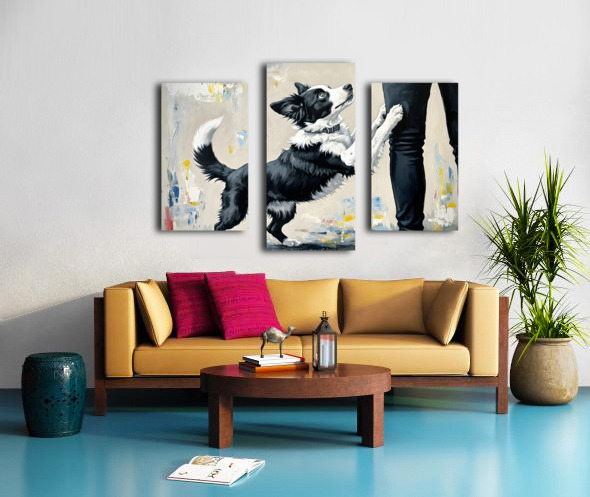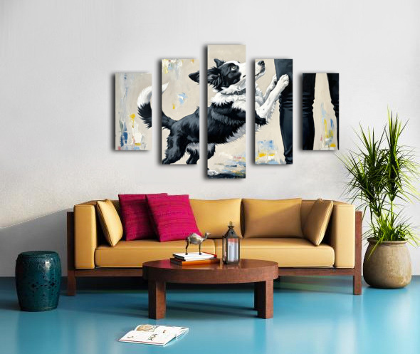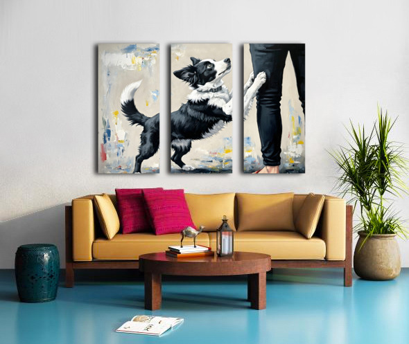 Border Collie Puppys Joyful Garden Victory Dance Impression sur toile