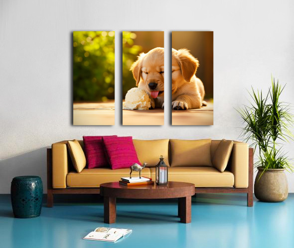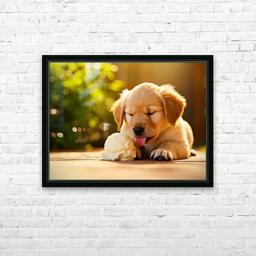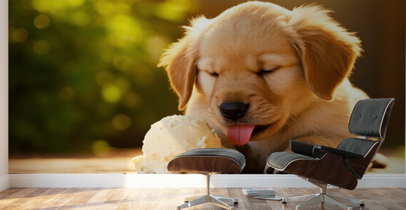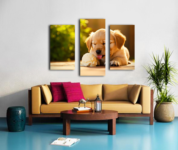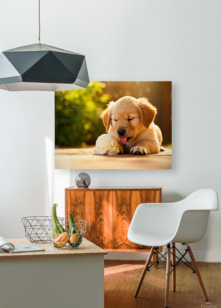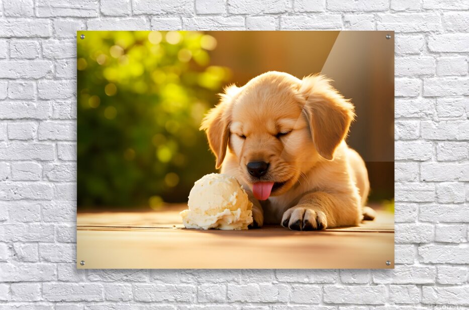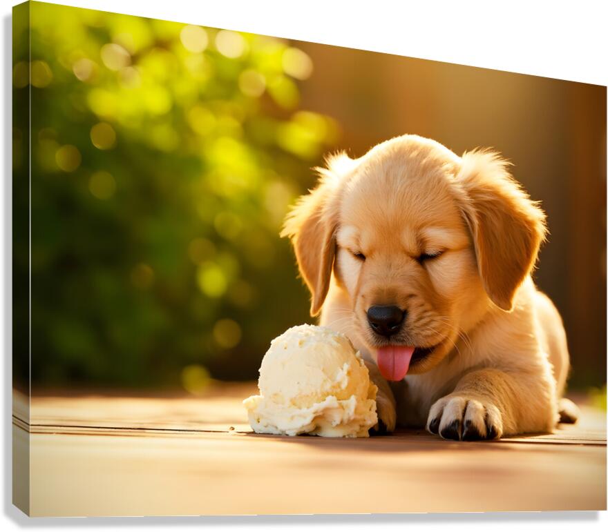 Golden Retriever Puppy Discovers Ice Cream Treat Impression sur toile