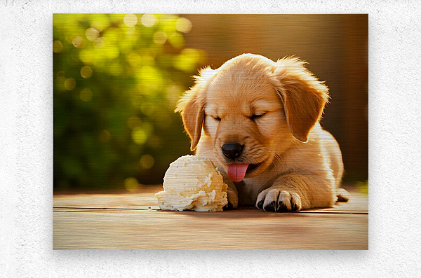 SUR CETTE OEUVRE: GOLDEN RETRIEVER PUPPY DISCOVERS ICE CREAM TREAT