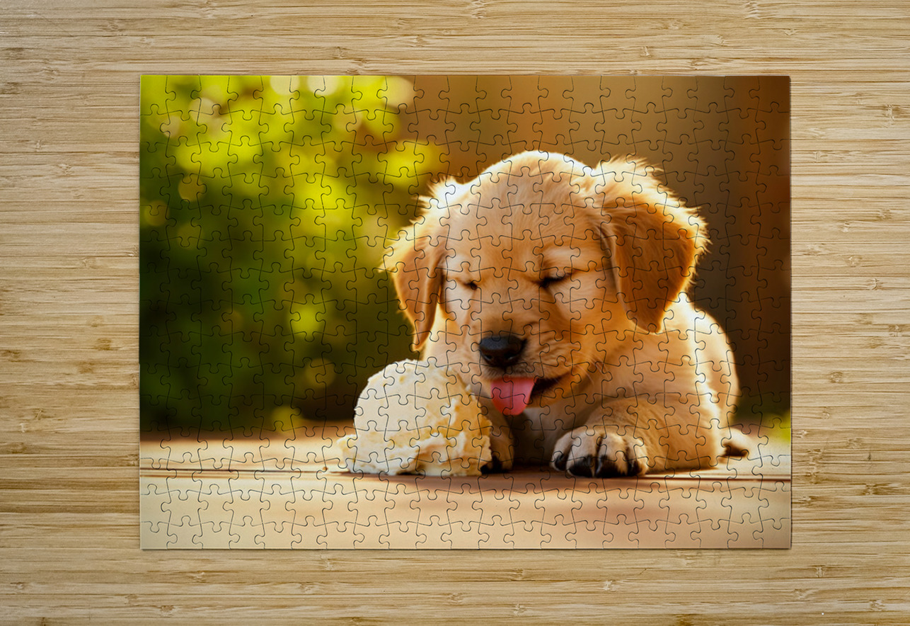 Golden Retriever Puppy Discovers Ice Cream Treat Puppy Prints Impression de puzzle