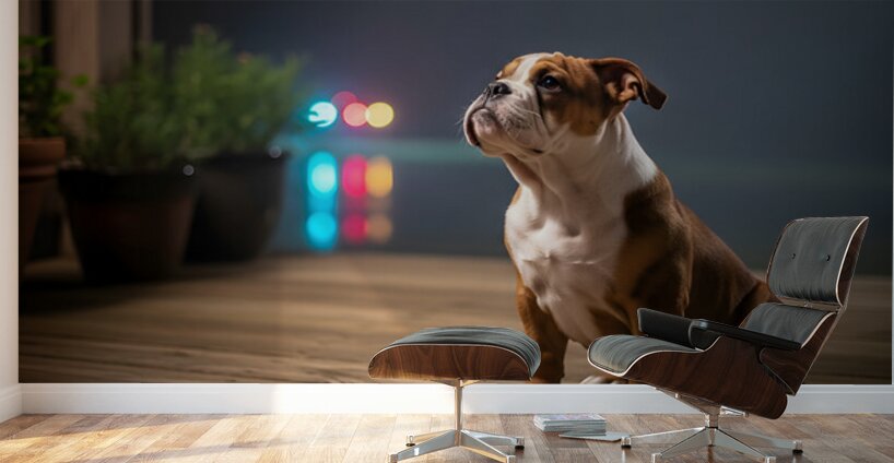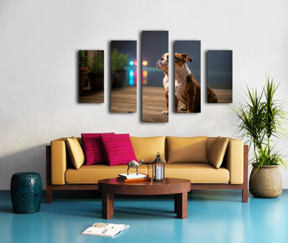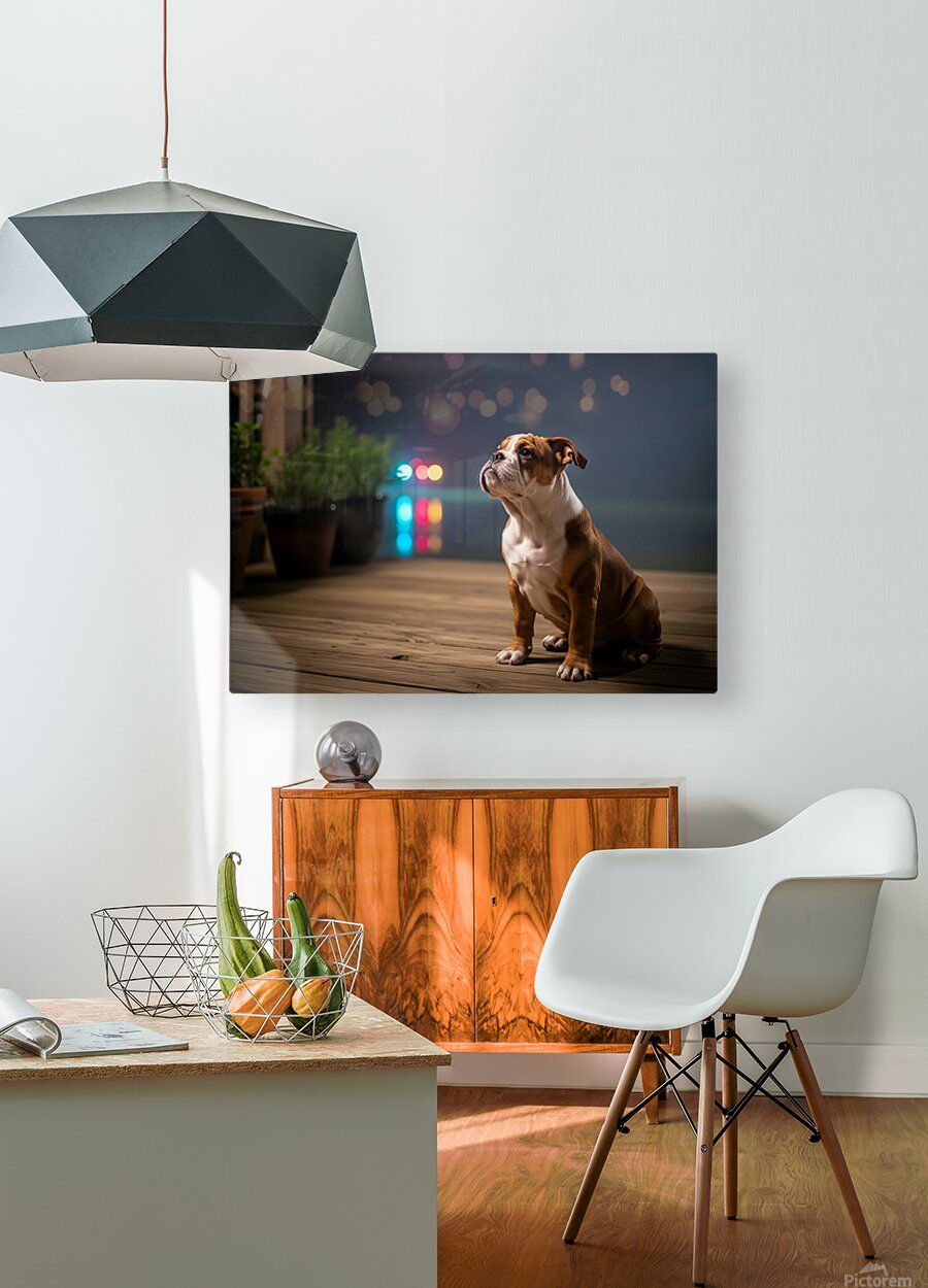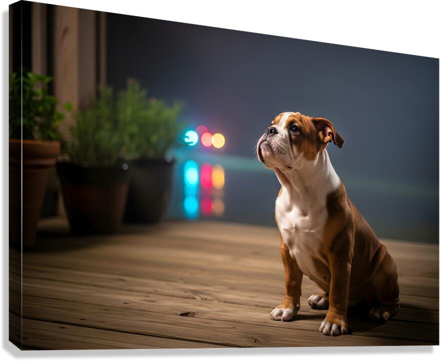 Bulldog Puppy Watches First Fireworks Display Impression sur toile