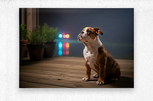 SUR CETTE OEUVRE: BULLDOG PUPPY WATCHES FIRST FIREWORKS DISPLAY