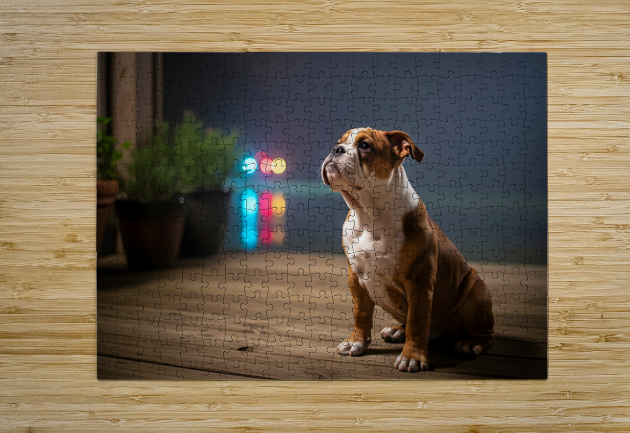 Bulldog Puppy Watches First Fireworks Display Puppy Prints Impression de puzzle