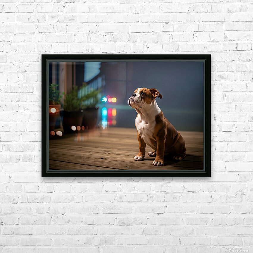 Pour obtenir "Bulldog Puppy Watches First Fireworks Display" dans une impression encadrée.