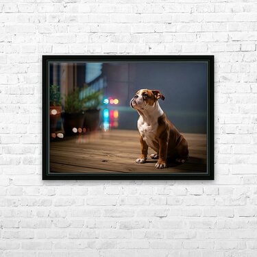 Bulldog Puppy Watches First Fireworks Display Cadre photo