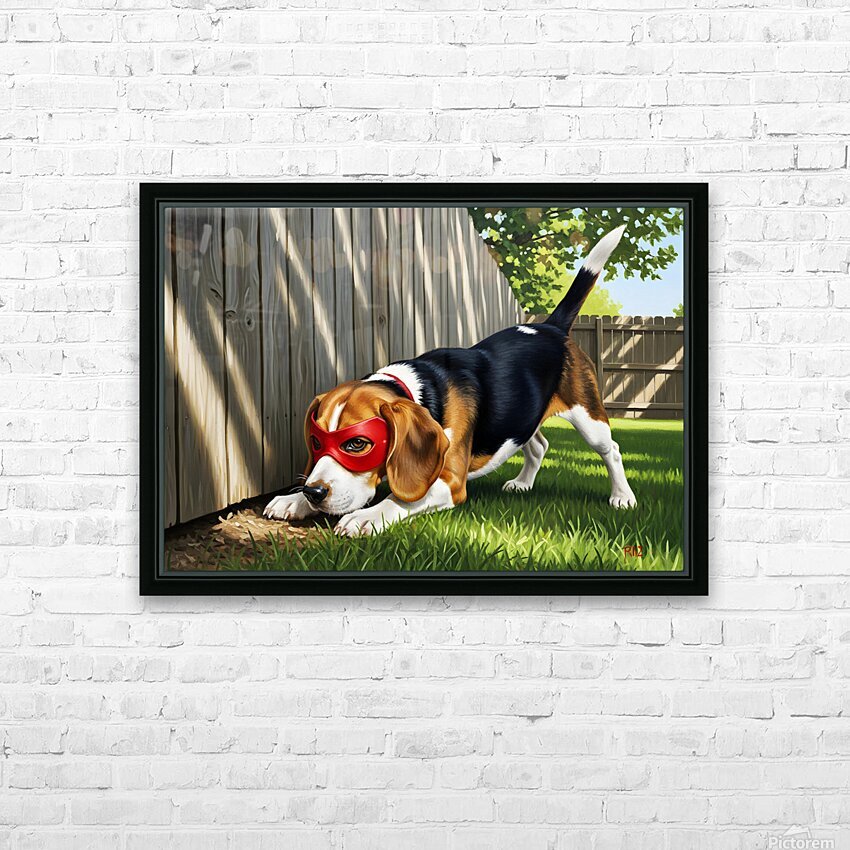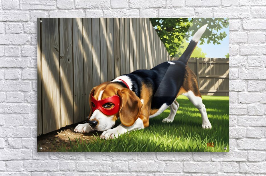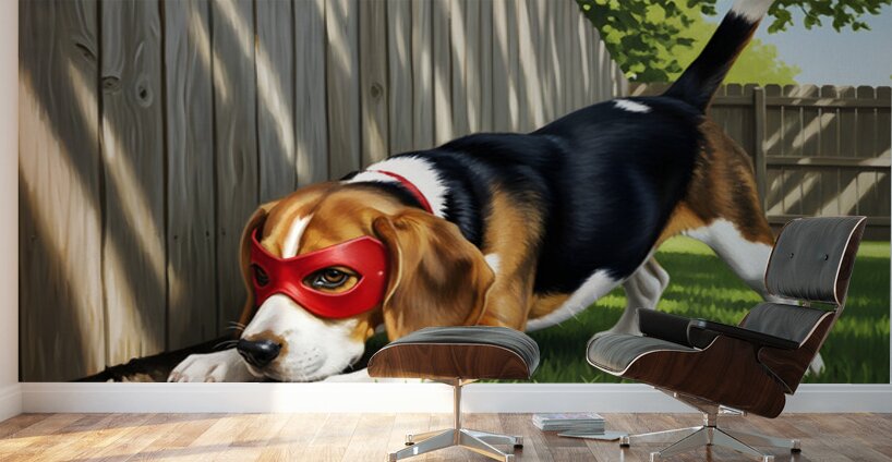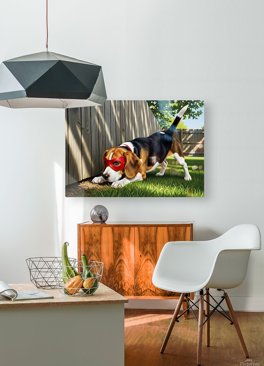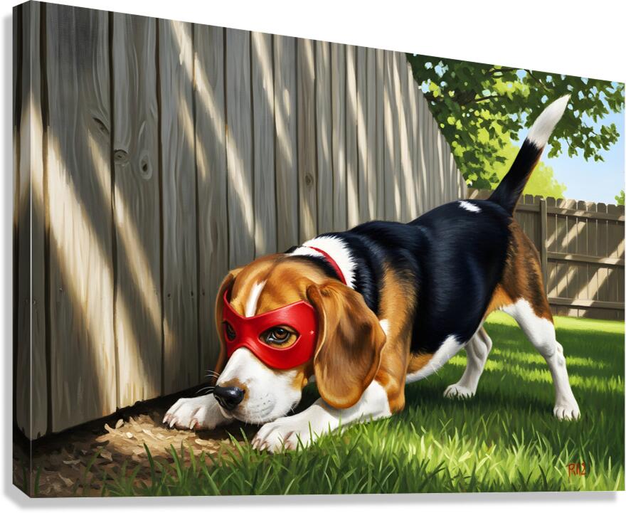 SUR CETTE OEUVRE: BEAGLE PUPPY DISCOVERS HIS SUPERHERO MASK