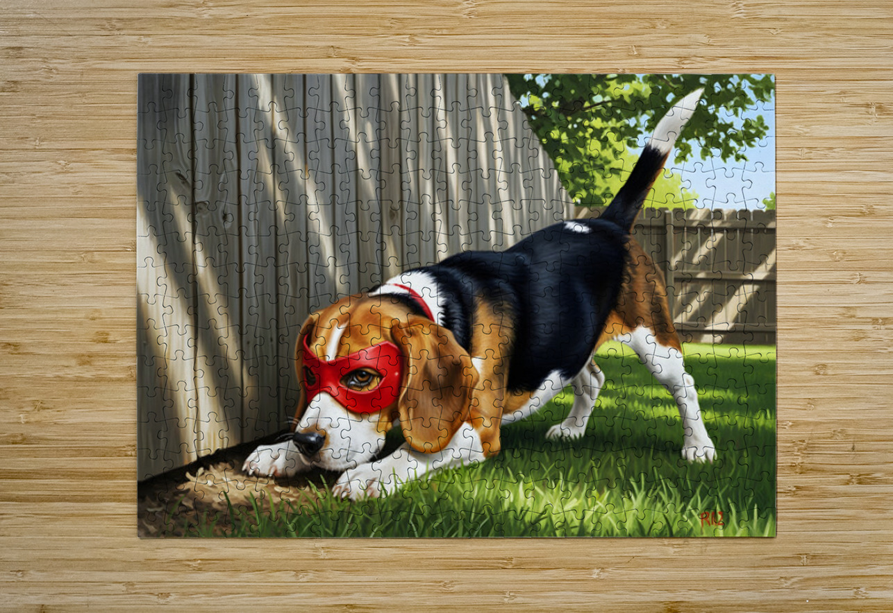 Beagle Puppy Discovers His Superhero Mask Puppy Prints Impression de puzzle