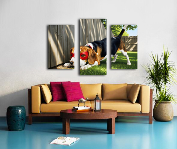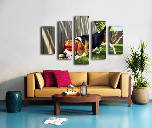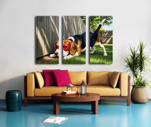 Beagle Puppy Discovers His Superhero Mask Impression sur toile