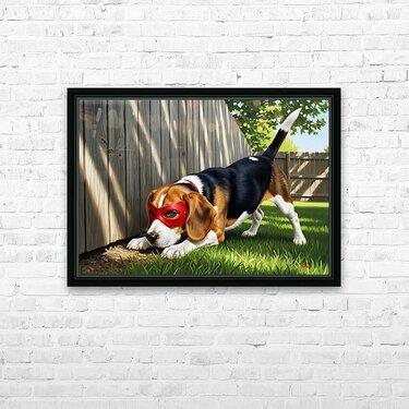 Beagle Puppy Discovers His Superhero Mask Impression du cadre