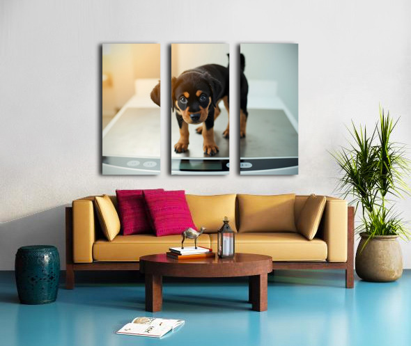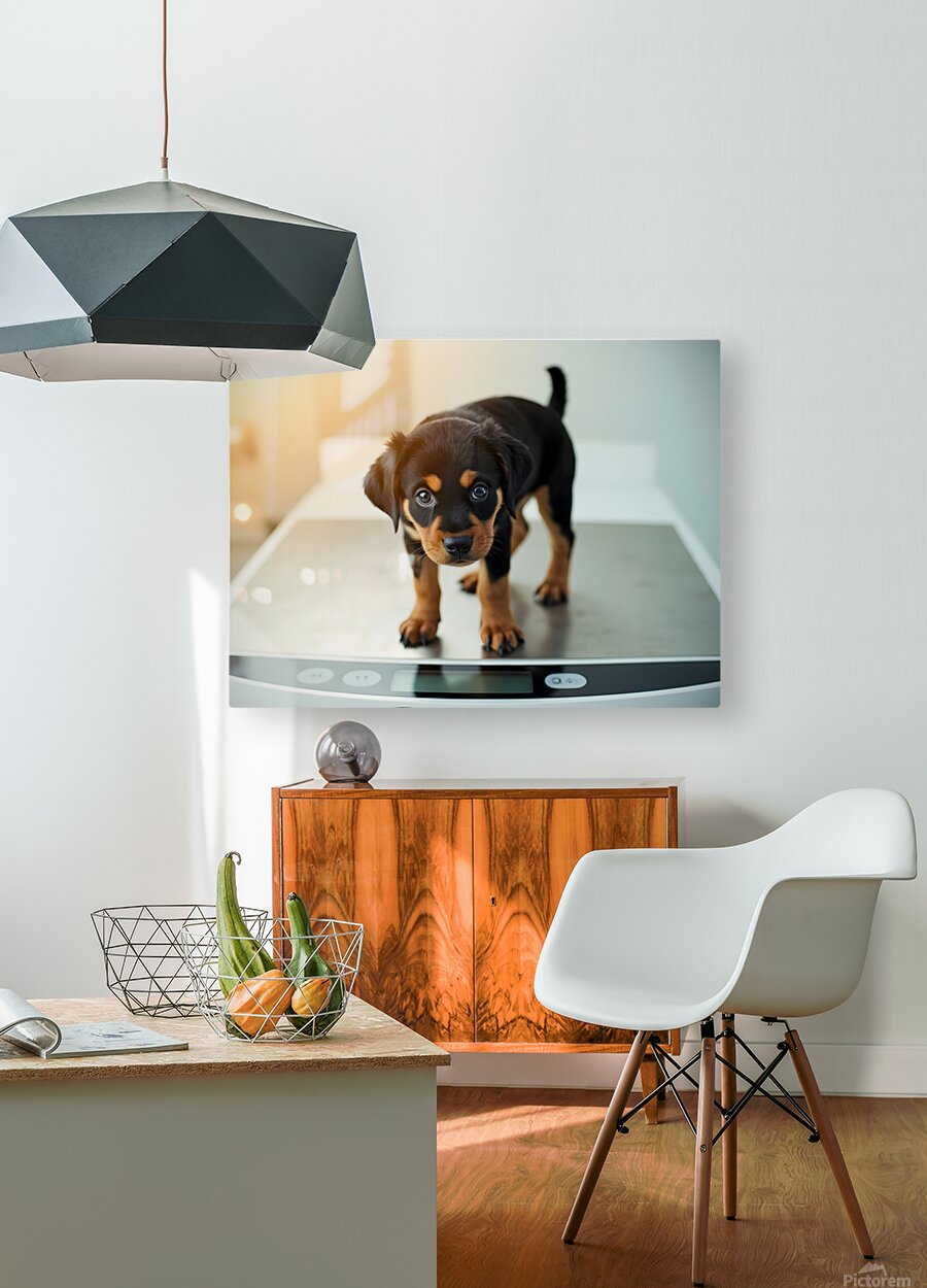 Pour obtenir "Brave Puppy Completes The Weighing" dans une impression encadrée.