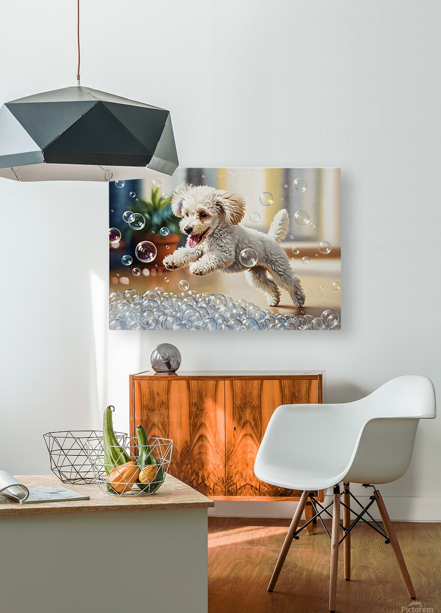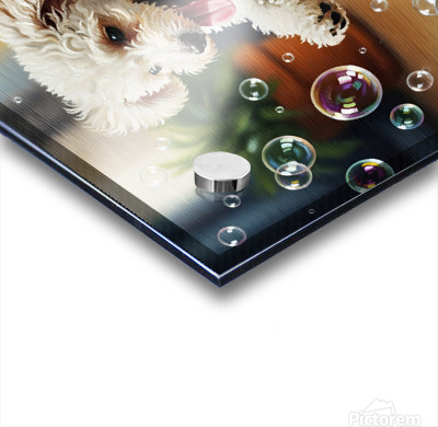 SUR CETTE OEUVRE: POODLE PUPPY DISCOVERS BATH BUBBLES