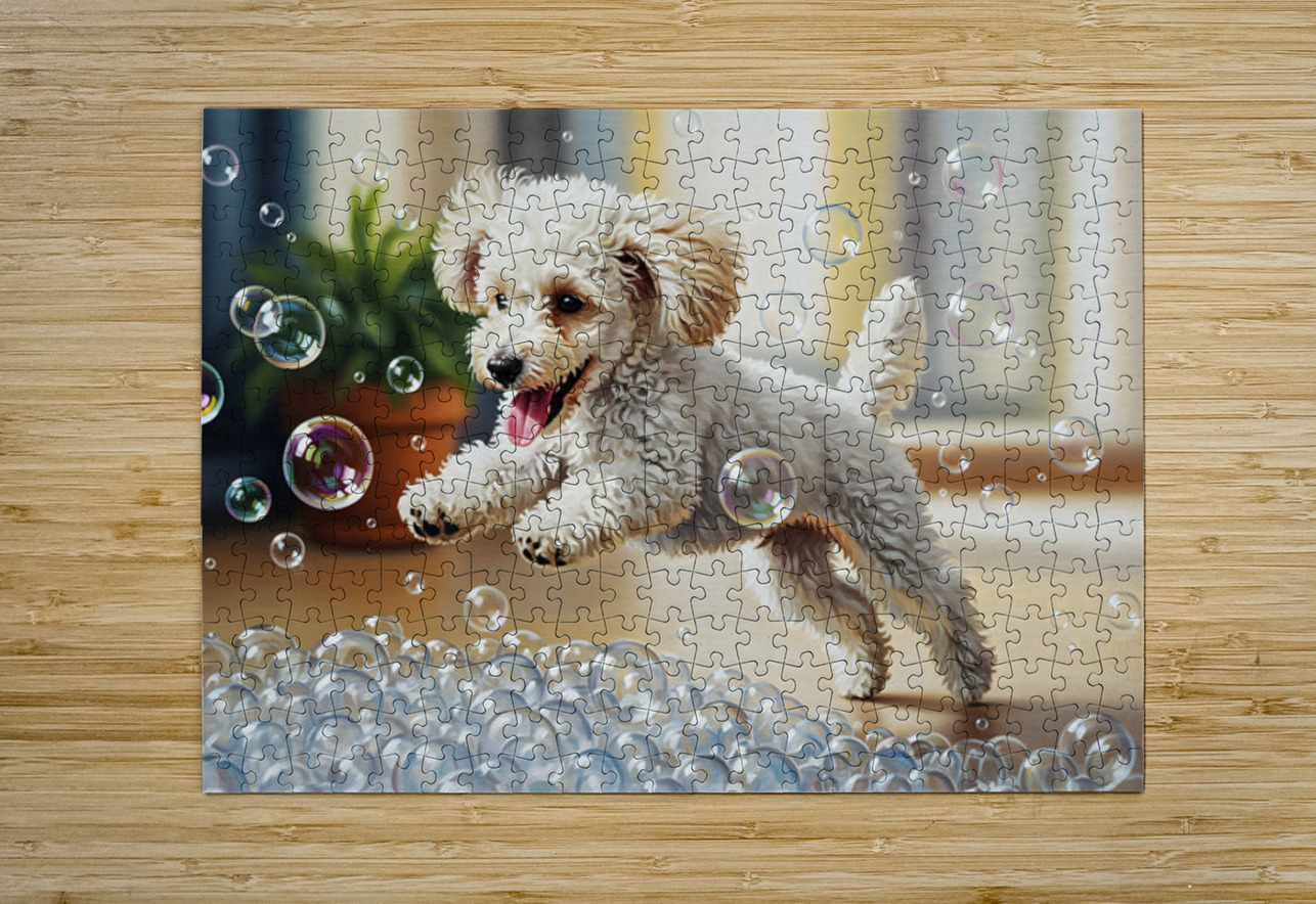 Poodle Puppy Discovers Bath Bubbles Puppy Prints Puzzle