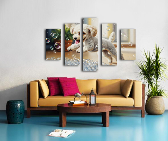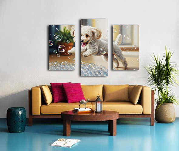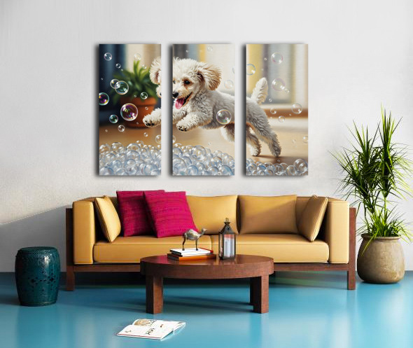 Poodle Puppy Discovers Bath Bubbles Impression sur toile