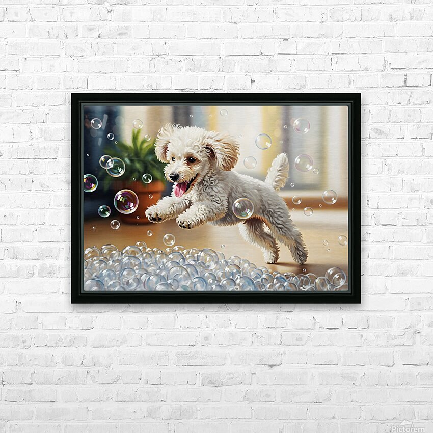 Poodle Puppy Discovers Bath Bubbles Impression du cadre
