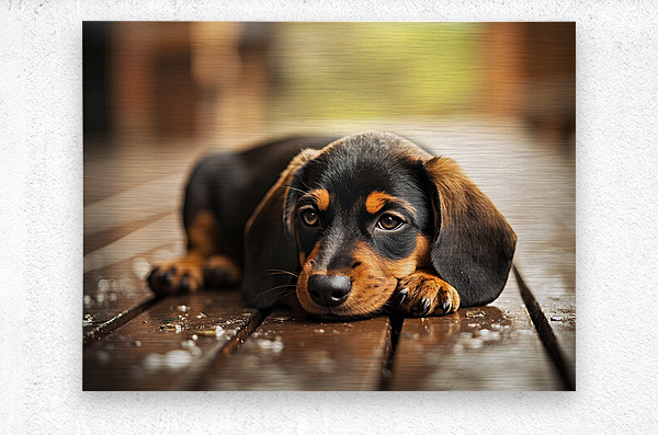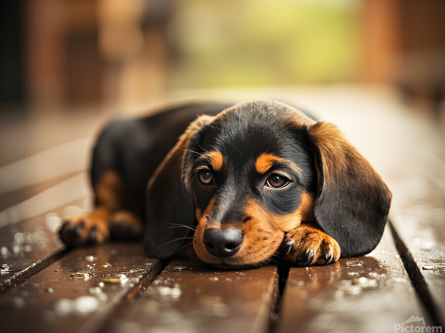 SUR CETTE OEUVRE: HAPPY DACHSHUND PUPPY AS STORM CLEARS WITH RAINBOW