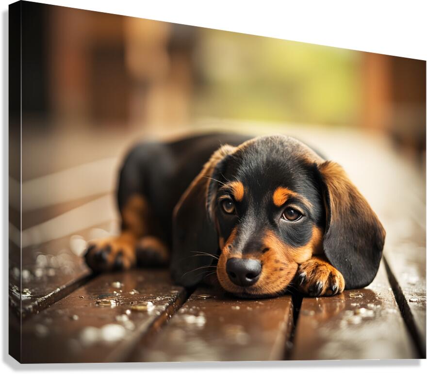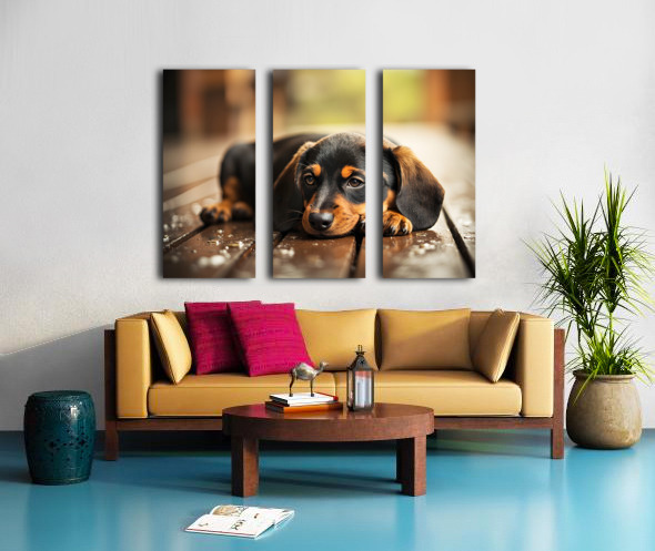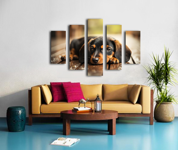 Happy Dachshund Puppy As Storm Clears With Rainbow Impression sur toile