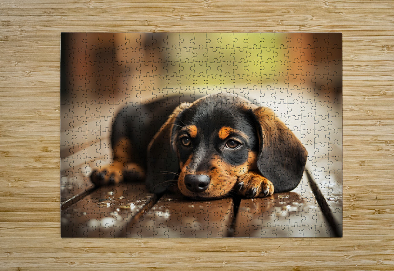 Happy Dachshund Puppy As Storm Clears With Rainbow Puppy Prints Puzzle
