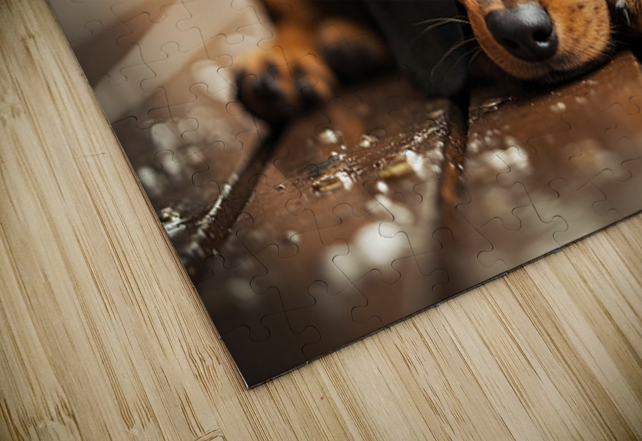 Happy Dachshund Puppy As Storm Clears With Rainbow Puppy Prints Impression de puzzle