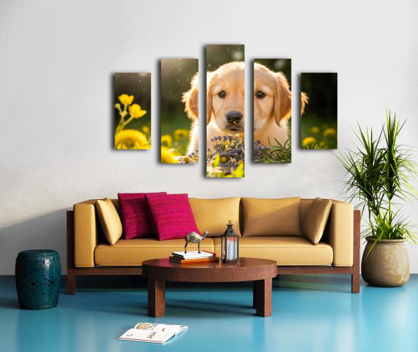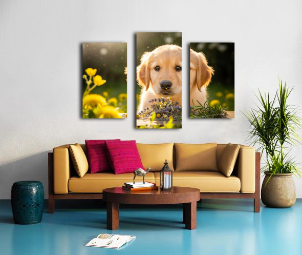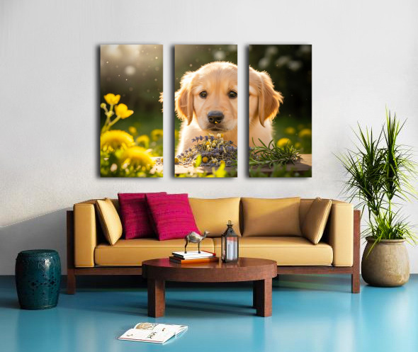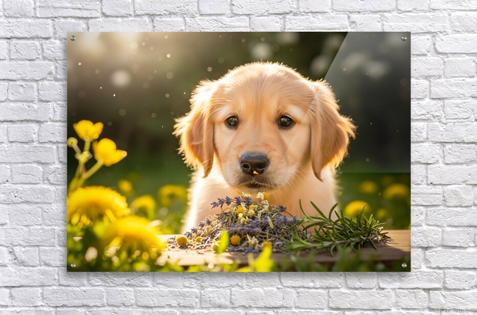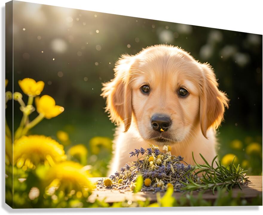 Golden Retriever Puppy Discovers Herb Pile Impression sur toile