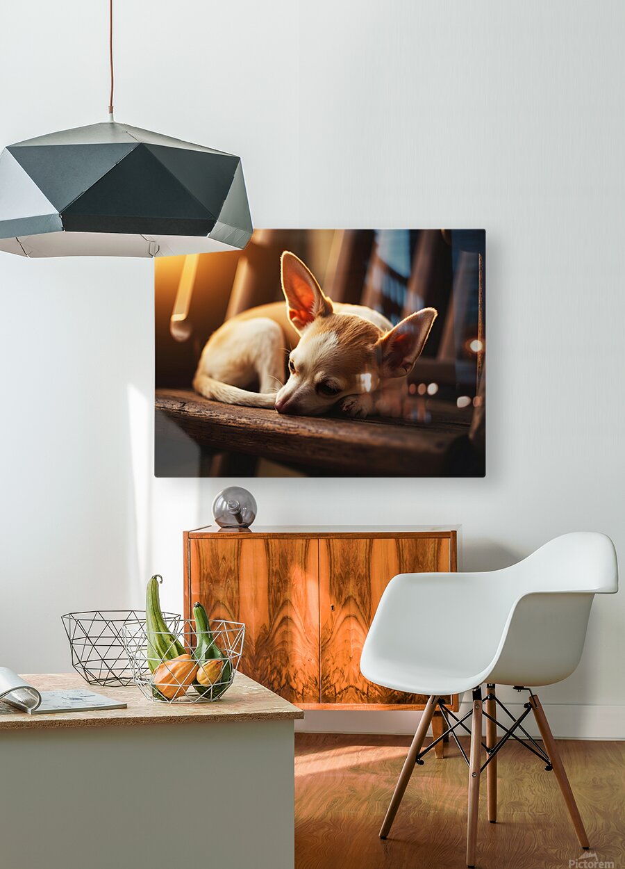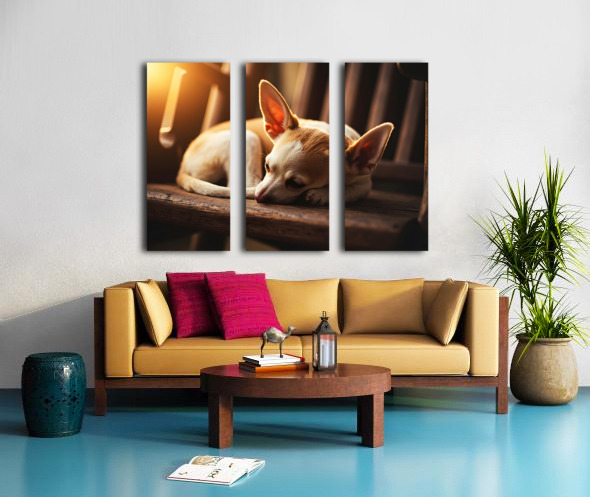 Chihuahua Puppy Dreams Peacefully On Rocking Chair Impression sur toile