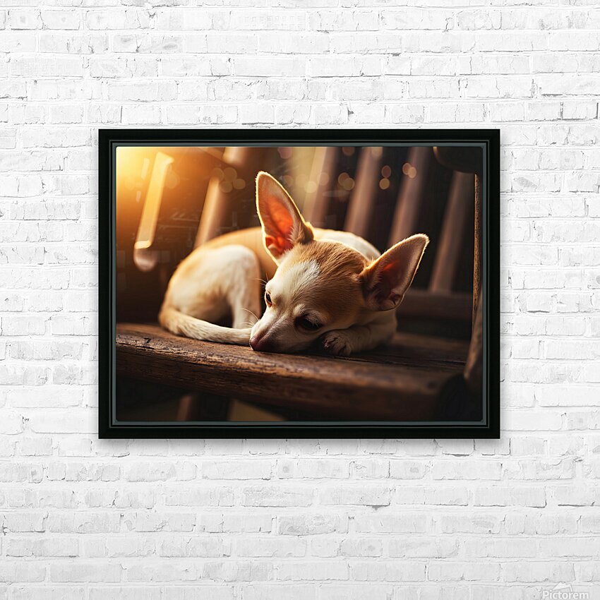 Pour obtenir "Chihuahua Puppy Dreams Peacefully On Rocking Chair" dans une impression encadrée.
