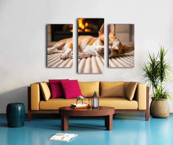 Chihuahua Puppy Falls Asleep By The Fire Impression sur toile