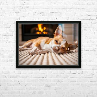 Chihuahua Puppy Falls Asleep By The Fire Impression du cadre