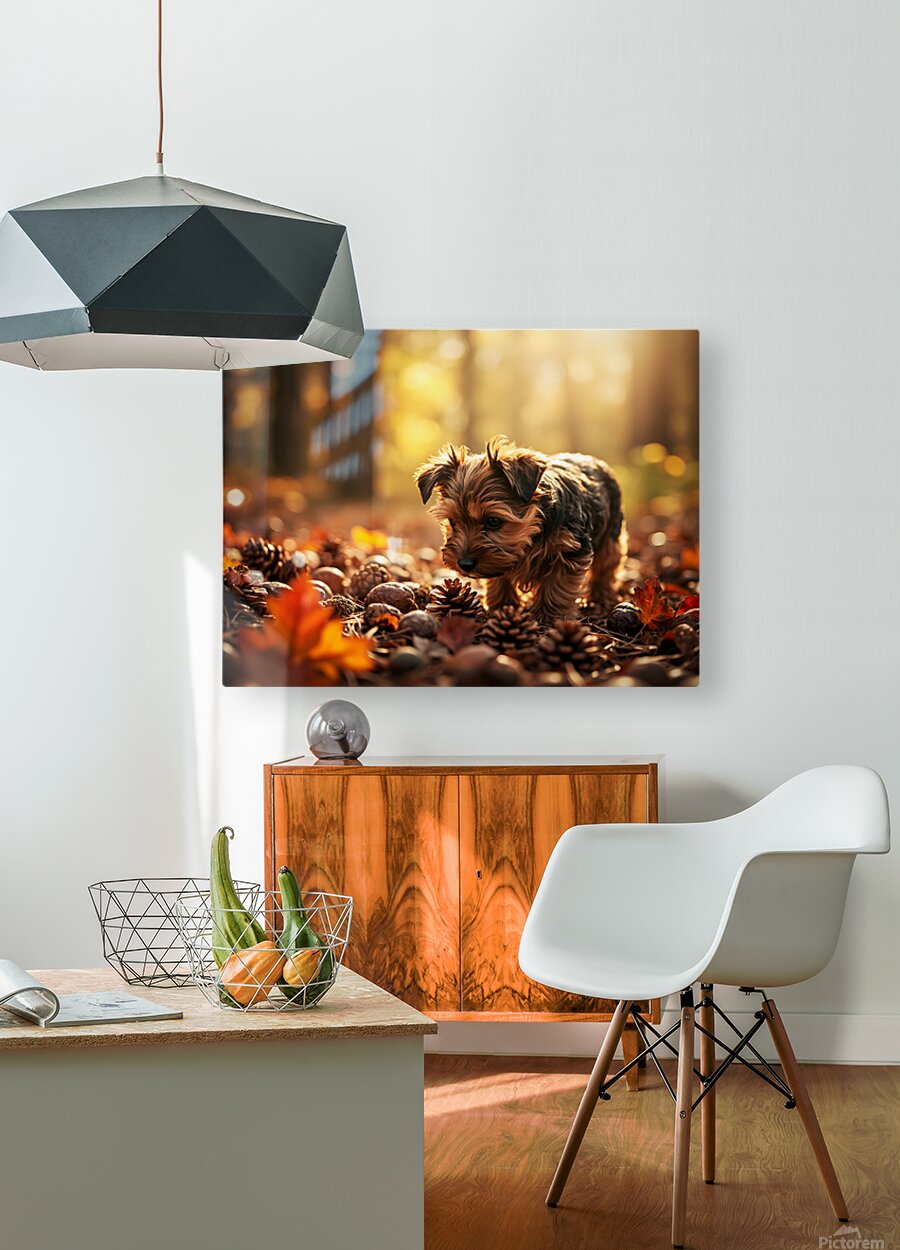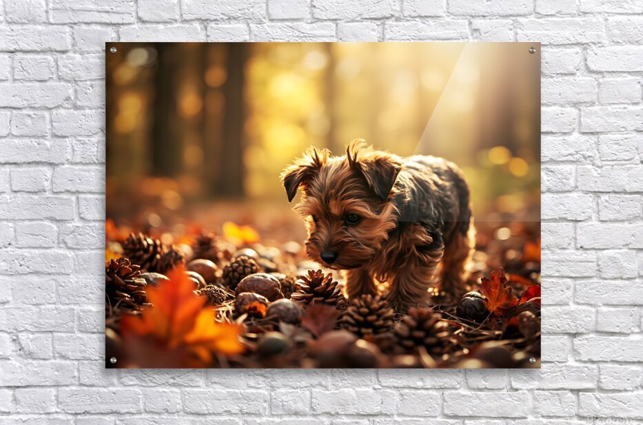 SUR CETTE OEUVRE: YORKSHIRE TERRIER PUPPY DISCOVERS CINNAMON STICKS