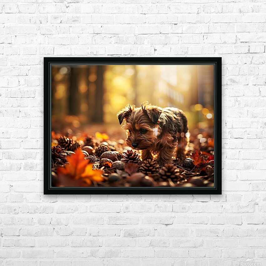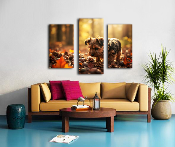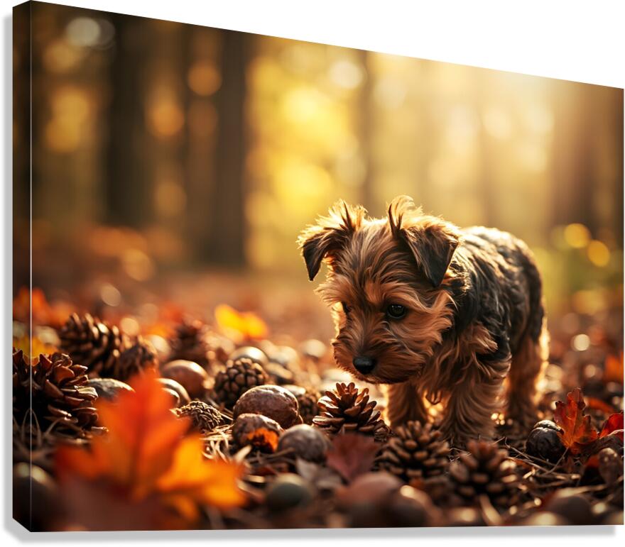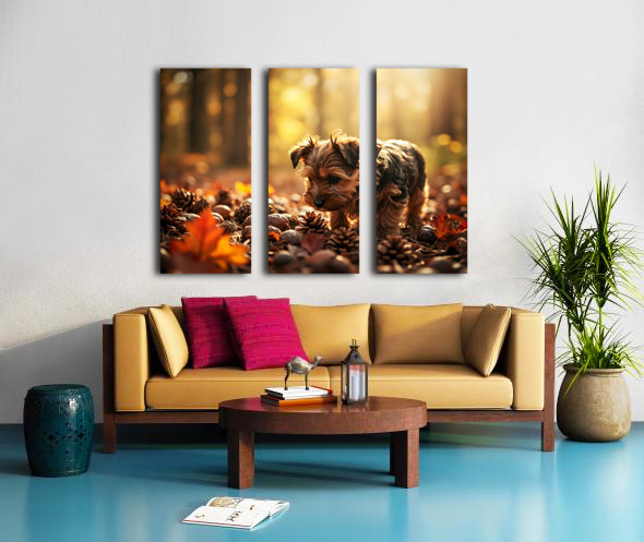 Yorkshire Terrier Puppy Discovers Cinnamon Sticks Impression sur toile
