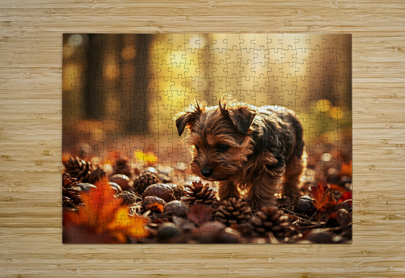 Yorkshire Terrier Puppy Discovers Cinnamon Sticks Puppy Prints Impression de puzzle