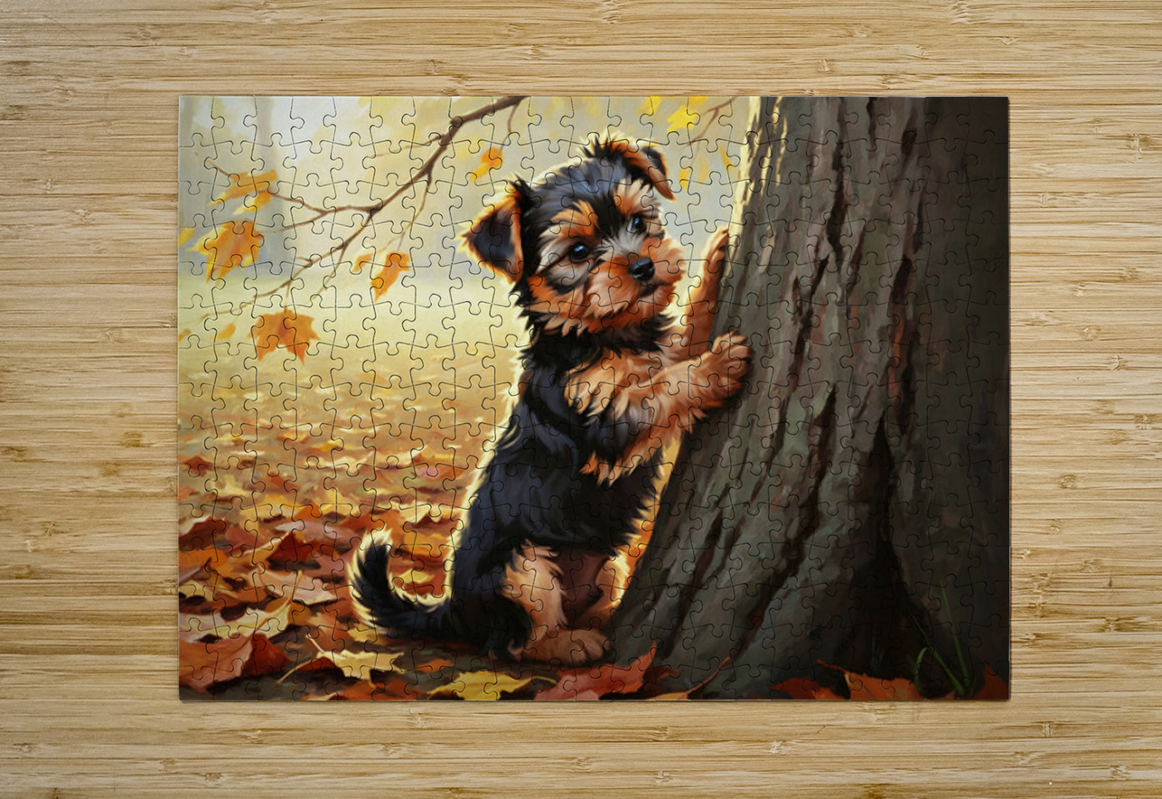 Yorkshire Terrier Puppy Spots Squirrel At Tree Base Puppy Prints Puzzle
