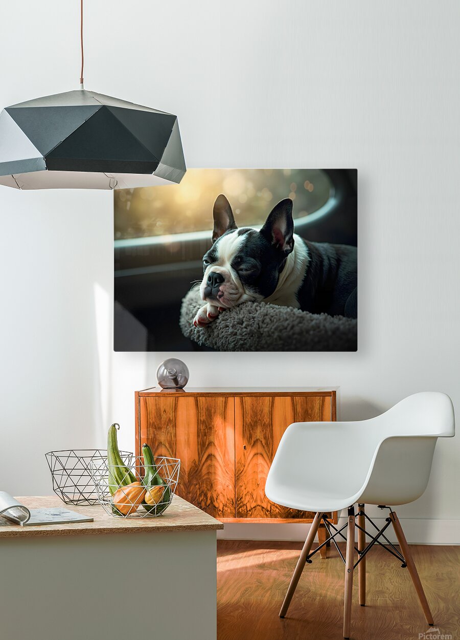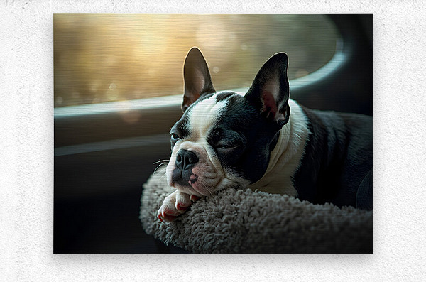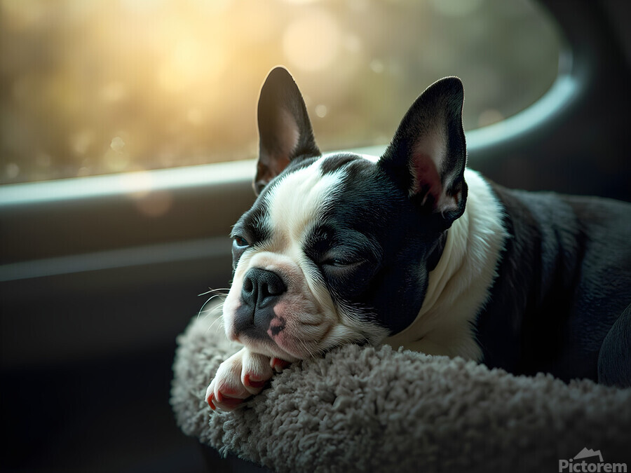 SUR CETTE OEUVRE: BOSTON TERRIER PUPPY SEES SUNSHINE AFTER THE RAIN